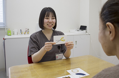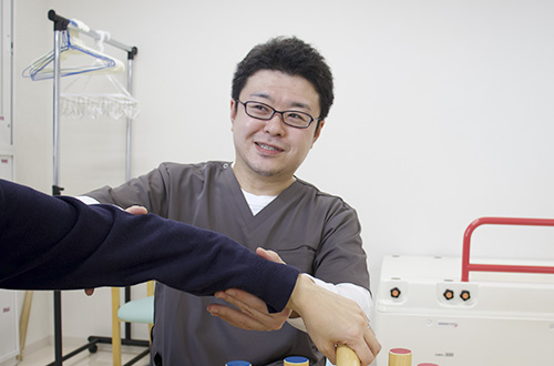 肩や肘・手指の関節可動域練習や筋力強化・巧緻動作練習(指の細かい動きの練習)を行います。食事、排泄、着替えといった日常生活を送る上で必要になる動作をより効率的・円滑に行えるように動作練習等を行います。また、患者さん一人一人に向き合い、精神面のサポートをしながら、その人らしく、より良い生活が過ごせるように支援していきます。