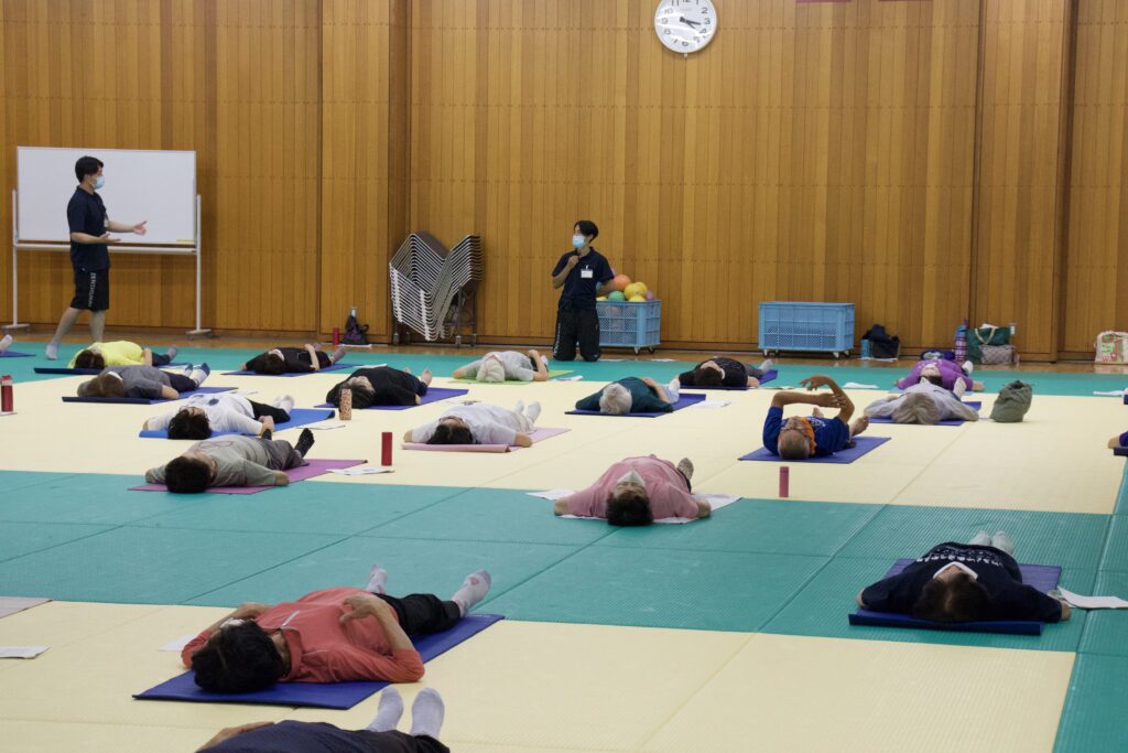 きれいな柔道場の畳の上で、皆さんリラックスして耳を傾け、運動の実技では講師に声をかけご質問される姿が多く見られました。