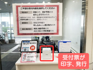 受付票が発券されますので、発券された受付票をお持ちの上、総合受付待合でお待ちください。